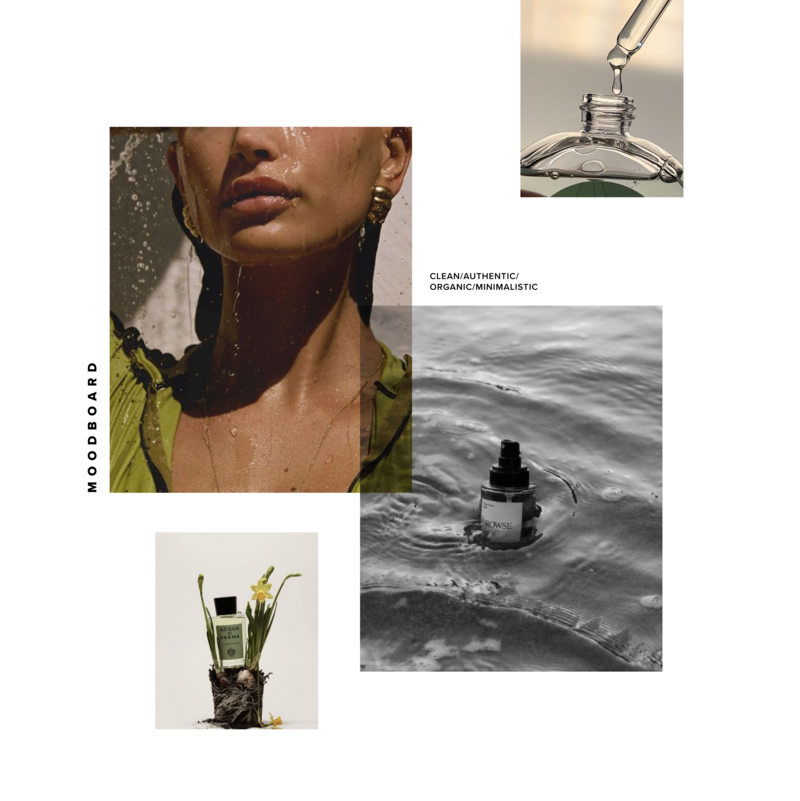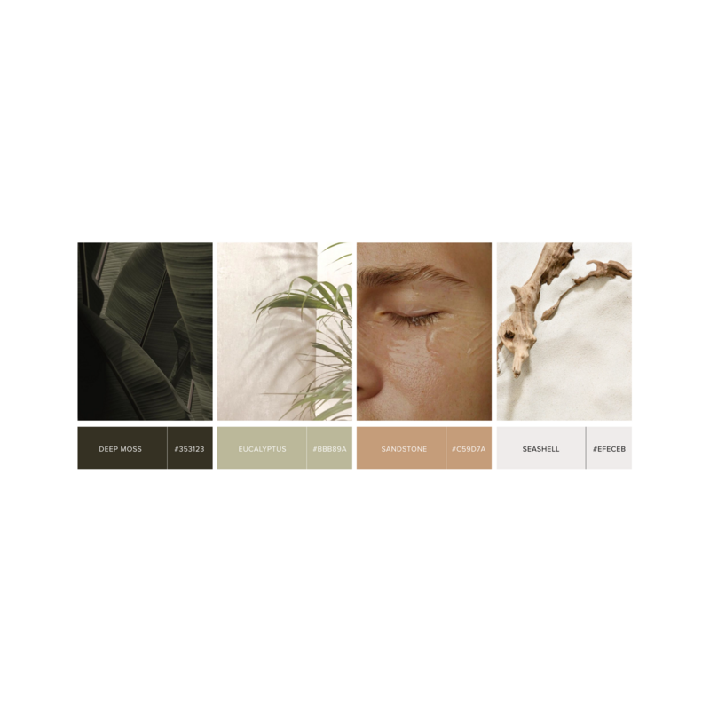Together, these hues create a harmonious visual identity that appeals to the environmentally conscious, sophisticated customer and emphasizes the brand’s values of sustainability and natural beauty.